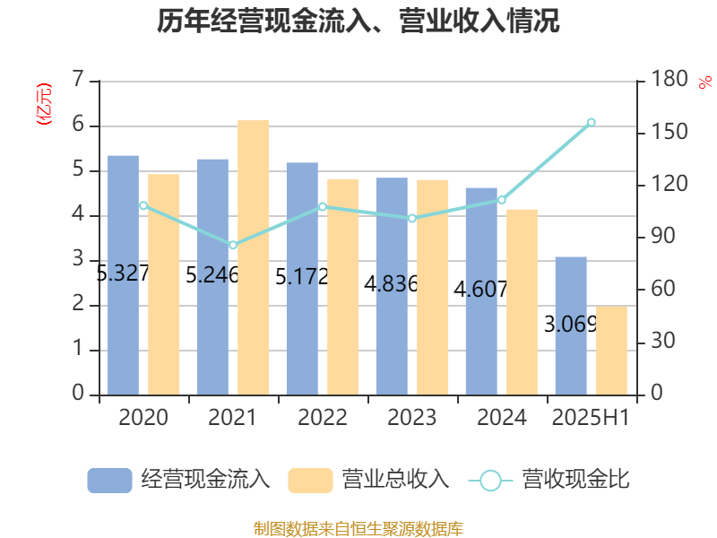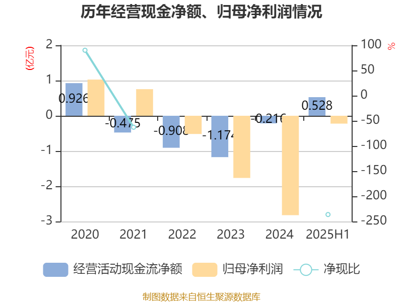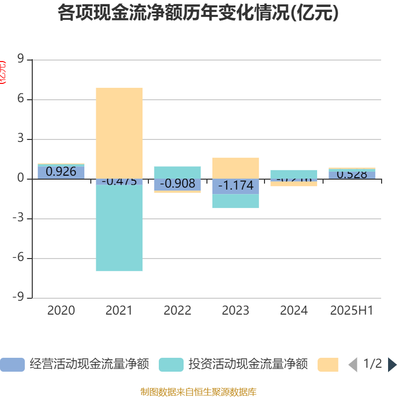 2025年上半年,公司经营活动现金流净额为5276.07万元,同比增加6183.05万元;筹资活动现金流净额905.62万元,同比增加2084.87万元;投资活动现金流净额2099.88万元,上年同期为2.6亿元。