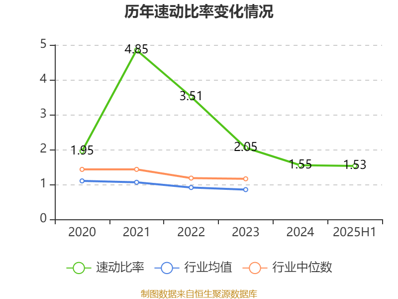 2025年上半年,公司流动比率为1.59,速动比率为1.53。