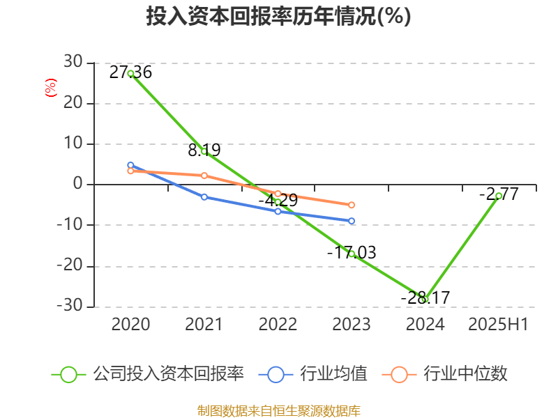 盈利能力方面, 2025年上半年公司加权平均净资产收益率为-3.26%,同比上升4.35个百分点。公司2025年上半年投入资本回报率为-2.77%,较上年同期上升2.82个百分点。