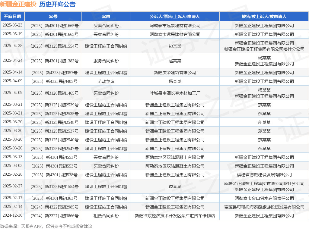 本站消息金牛在线,根据天眼查APP显示金牛在线,近日公布了一则新疆金正建投工程集团有限公司作为被告/被上诉人的开庭公告,详细内容如下:
